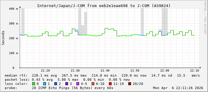 5. Median RTT 0.223000 seconds
